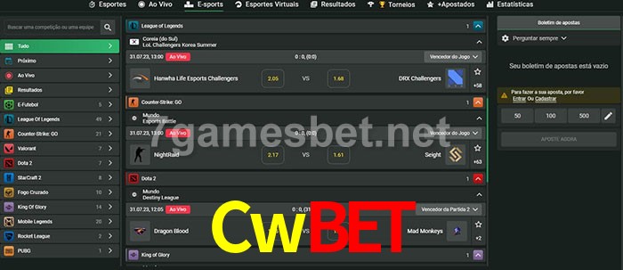 A aposta Cwbet oferece aos jogadores a experiência mais conveniente de apostas em eSports!